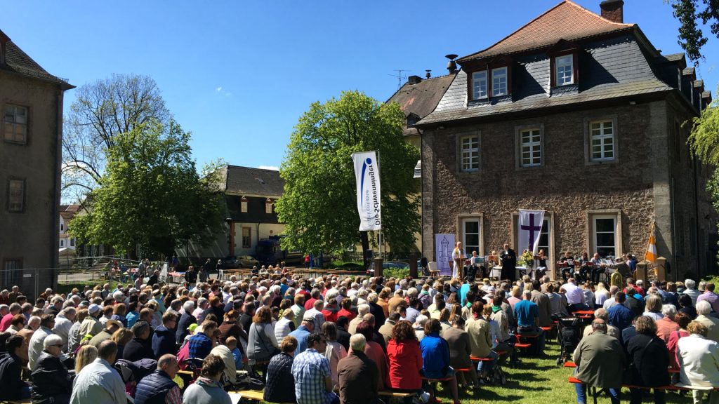 Im Wächtersbacher Schlosspark bot sich am Himmelfahrtstag ein beeindruckender Anblick. Bei strahlendem Sonnenschein waren mehrere hundert Besucher auf die große Wiese vor dem Schloss gekommen, um den traditionell ökumenischen Gottesdienst zu feiern. Musikalisch unterstützt vom Ev. Posaunenchor wurde der Gottesdienst in diesem Jahr von Pfarrer Christoph Schilling und Pfarrer Rainer Heller zelebriert. In seiner Ansprache ging […]